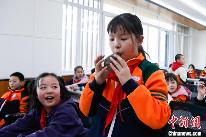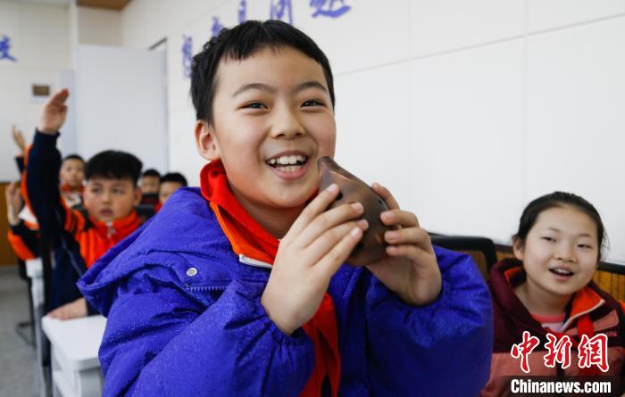 圖為學(xué)生在“國(guó)寶音樂(lè)會(huì)”社教課中體驗(yàn)吹陶塤。中新社記者 馬銘言 攝