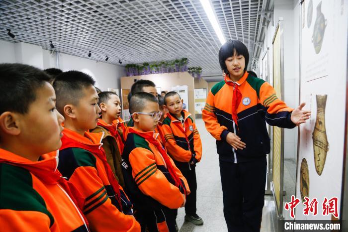 3月11日,青海省博物館“1+3”主題流動(dòng)展覽走進(jìn)西寧市城西區(qū)文逸小學(xué),800余名小學(xué)生參觀展覽,參與“國(guó)寶音樂(lè)會(huì)”“土族娃娃布貼畫(huà)”等社教課程。本次展覽以青海歷史文物展為主,青海非物質(zhì)文化遺產(chǎn)精品展、青??脊懦晒?、百年青海革命文物目錄展為輔,學(xué)生可近距離了解青海歷史文化,感受多元民族文化魅力。圖為學(xué)生參觀展覽。中新社記者 馬銘言 攝