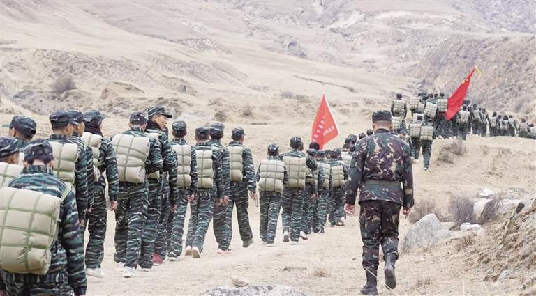 集體野外徒步拉練。 圖由共青團(tuán)西藏自治區(qū)委員會(huì)提供