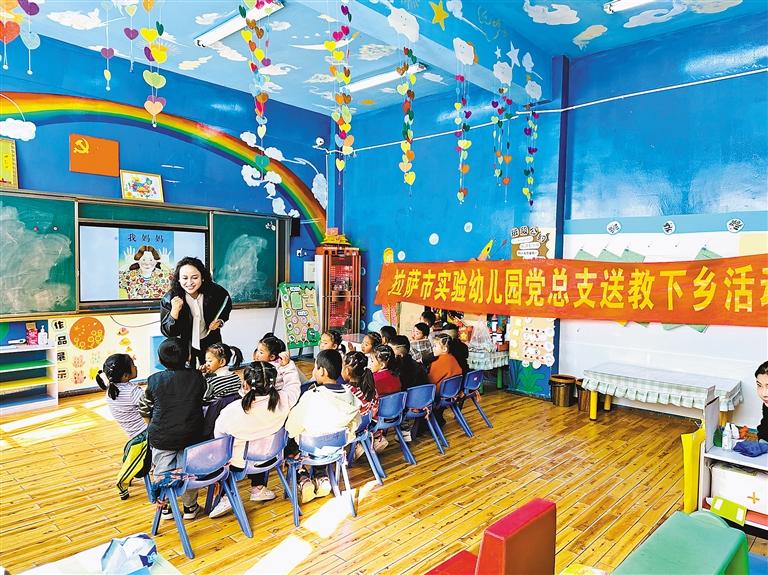 圖為拉薩市實(shí)驗(yàn)幼兒園黨員教師深入曲水縣南木鄉(xiāng)幼兒園開(kāi)展送教活動(dòng)。記者 央金 攝