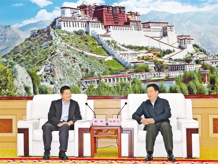 近日,西藏自治區(qū)黨委書記王君正在拉薩與復(fù)旦大學(xué)黨委書記裘新一行座談。