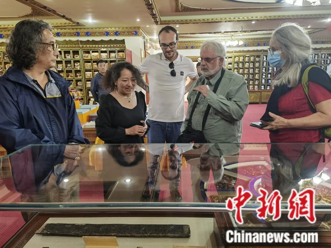 圖為2023年9月20日,外籍專(zhuān)家學(xué)者參觀西藏大學(xué)圖書(shū)館藏文古籍研究所。中新社記者 趙延 攝