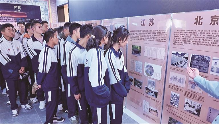 學(xué)生觀(guān)看禁毒先驅(qū)林則徐生平史績(jī)?nèi)珖?guó)聯(lián)展展板。文/圖 記者 張雪芳