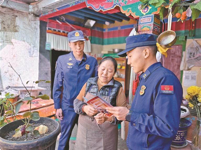 拉薩市消防救援支隊(duì)宣傳員深入老城區(qū)“敲門入戶”為居民普及家庭消防安全常識(shí)。