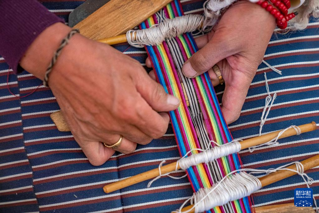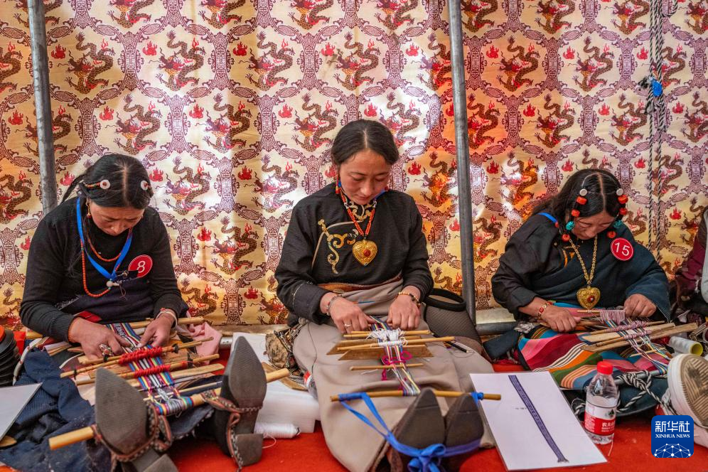5月12日,在那曲市聶榮縣尼瑪鄉(xiāng),農(nóng)牧民選手在進(jìn)行手工編織技能比賽。新華社記者 孫非 攝