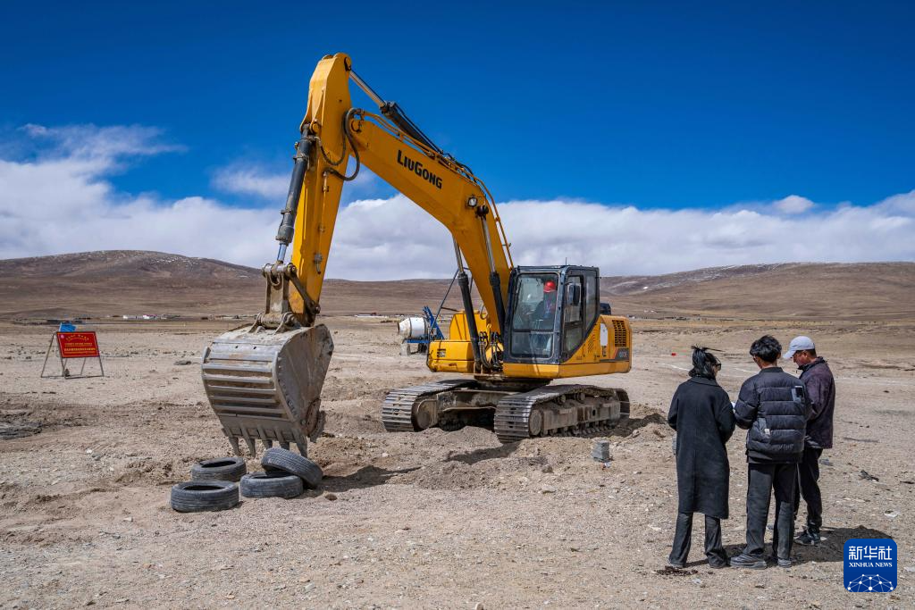 5月11日,在那曲市聶榮縣尼瑪鄉(xiāng),農(nóng)牧民選手在進(jìn)行挖掘機(jī)操作技能的比賽。新華社記者 孫非 攝 ??