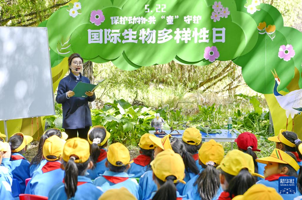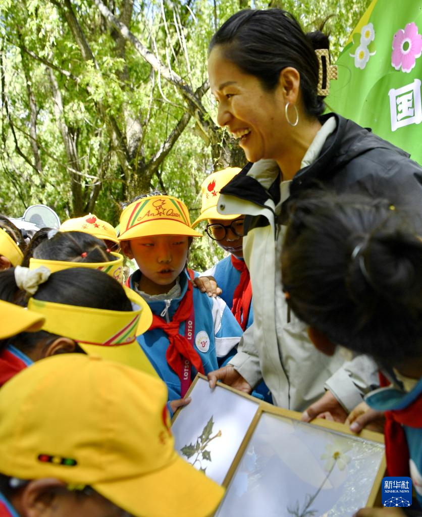 5月22日,西藏大學生態(tài)環(huán)境學院副教授索南措向小學生普及植物多樣性知識。新華社記者 張汝鋒 攝