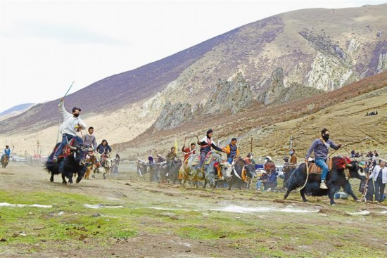 為展示農牧民群眾的活力與風采,日前,拉薩市墨竹工卡縣扎西崗鄉(xiāng)和甲瑪鄉(xiāng)聯合開展賽牦?;顒?。扎西崗鄉(xiāng)、甲瑪鄉(xiāng)農牧民群眾身著盛裝,牽著精心裝扮的牦牛早早來到扎西崗鄉(xiāng)斯布村,參加賽牦牛活動。隨著一聲令下,騎手們驅策著牦牛疾馳而出,蹄下塵土飛揚,活動現場吶喊聲與加油聲此起彼伏,場外觀眾紛紛拿出手機,記錄精彩瞬間。
