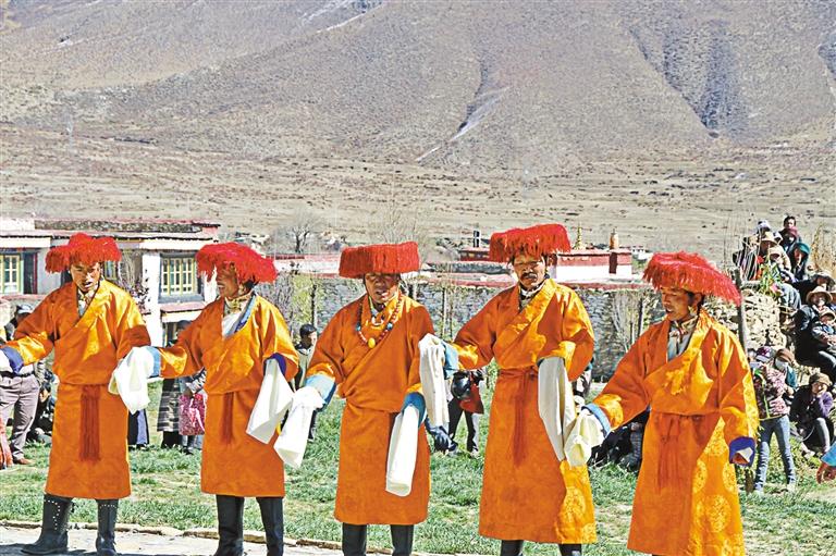 甲瑪鄉(xiāng)諧欽隊(duì)在非遺巡展活動(dòng)上表演諧欽。
