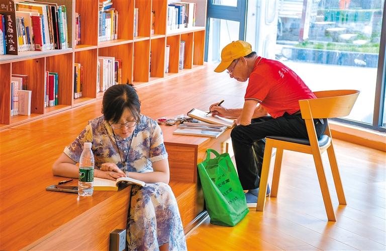 圖為墨脫縣群眾和游客在蓮花書(shū)屋內(nèi)閱讀、學(xué)習(xí)。記者 劉楓 攝