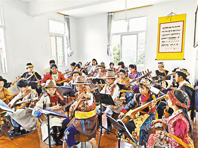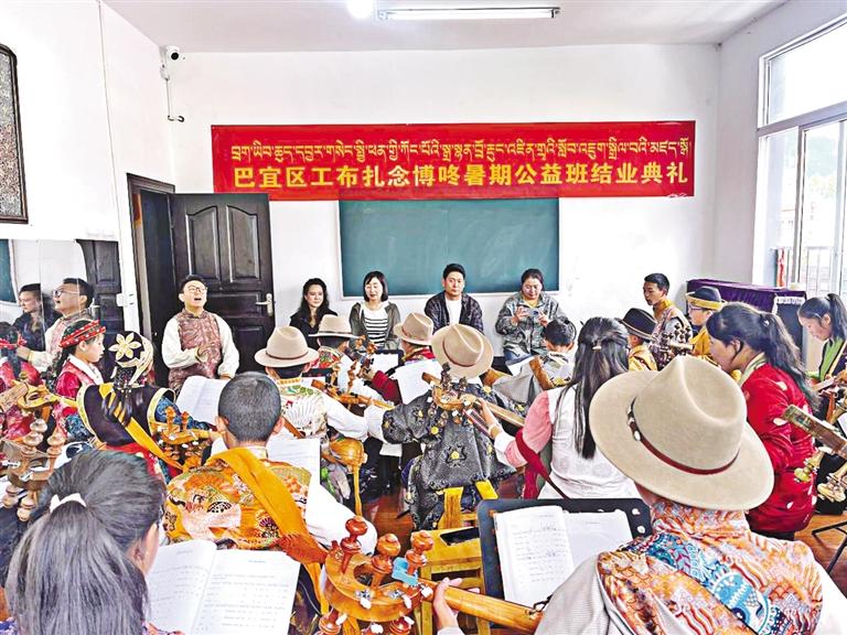 工布扎念博咚,是林芝傳統(tǒng)音樂(lè),也是國(guó)家級(jí)非物質(zhì)文化遺產(chǎn)。此次暑期公益培訓(xùn)班邀請(qǐng)了經(jīng)驗(yàn)豐富、技藝精湛的扎念老師進(jìn)行授課,向?qū)W員傳授工布扎念博咚的演奏技巧、音樂(lè)理論和文化內(nèi)涵。