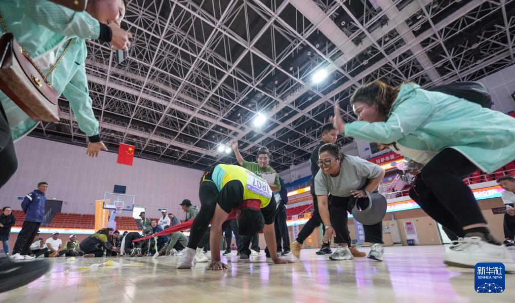 這是8月19日拉薩市特殊教育學校代表隊選手索朗羅布(中)在押加比賽中。新華社記者 晉美多吉 攝