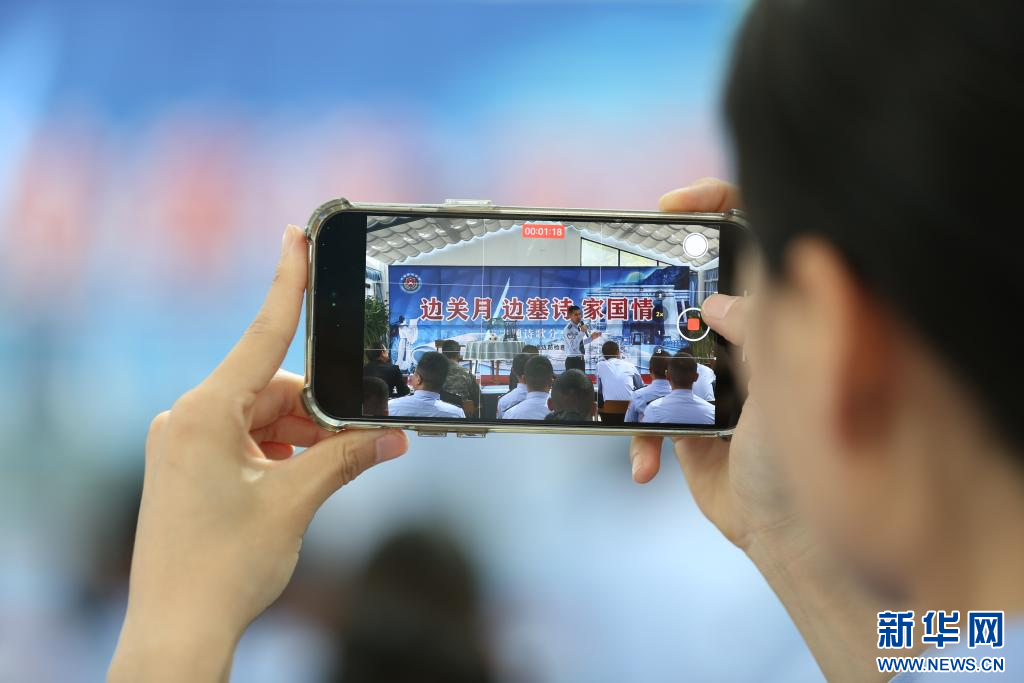 觀看詩(shī)歌分享會(huì)的民警用手機(jī)錄制精彩瞬間(9月11日攝)。新華社發(fā)(肖富貴 攝)