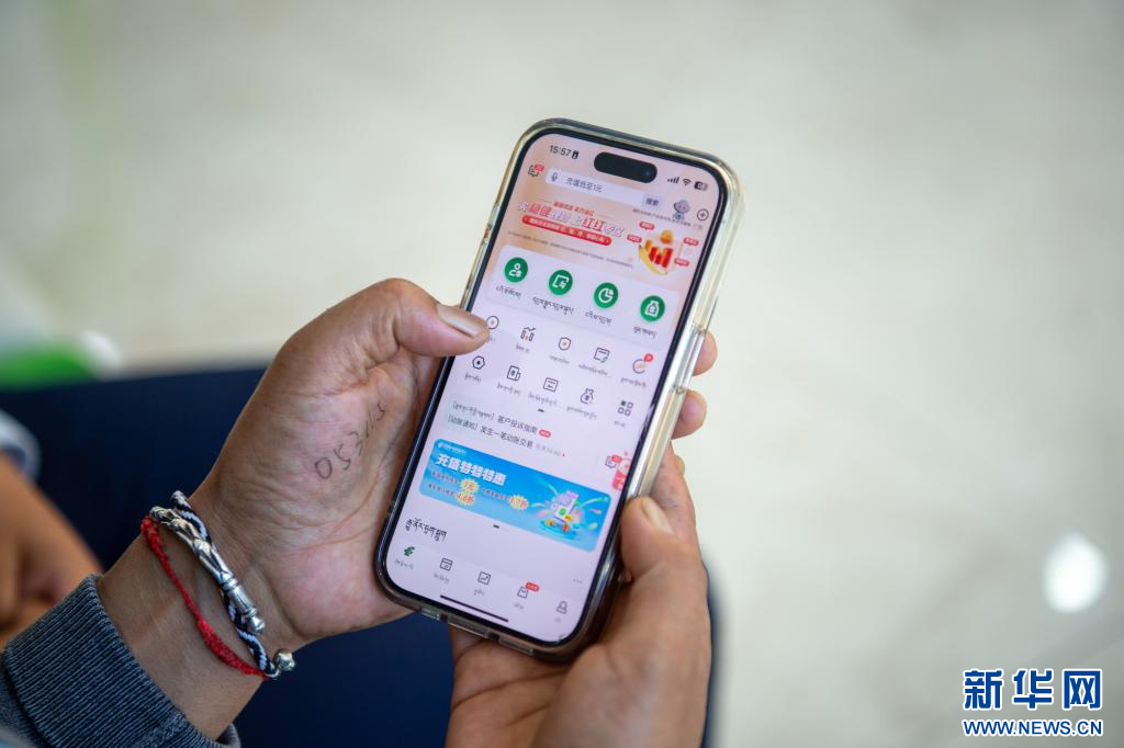 手機(jī)銀行藏文服務(wù)頁面。(新華社發(fā),旦增努布攝)