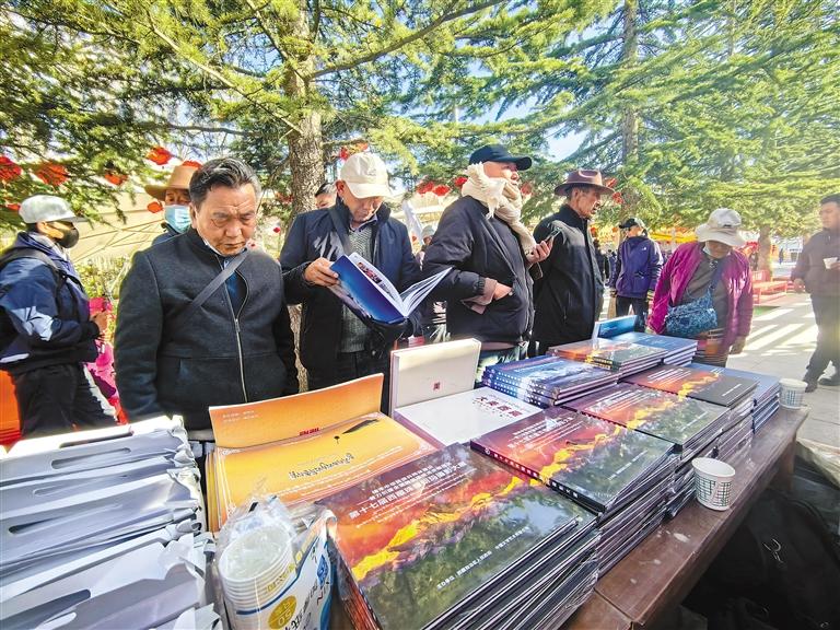 圖為市民在觀看關(guān)于西藏題材的畫冊。記者 洛桑 攝