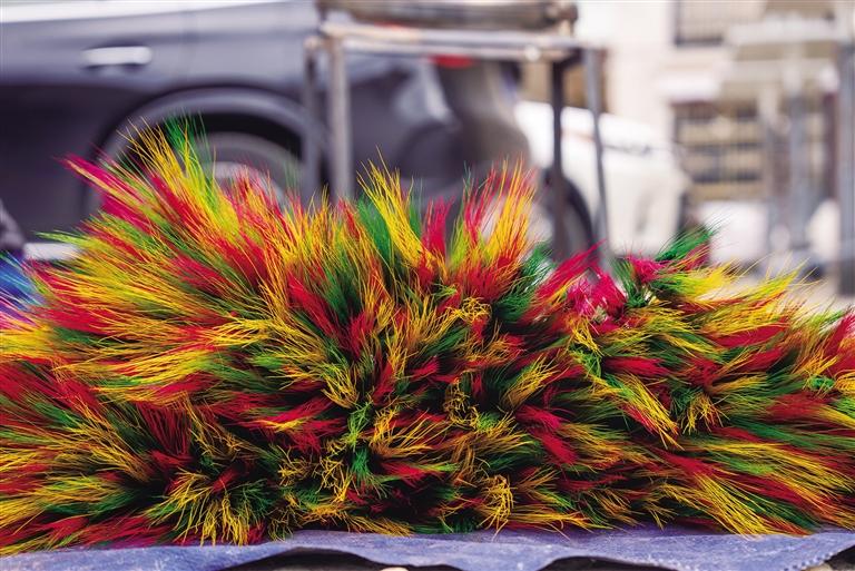 “銷量好的時候一天可以賣近1000元,一般的時候也有500元左右?!毖虢鹱屑殭z查著剛?cè)竞蒙摹傲_薩梅朵”,她的手和臉因長時間接觸顏料而沾滿色彩?!耙郧啊_薩梅朵’的顏色并不多,只有玫紅色,上色不均勻也沒人會說什么。但現(xiàn)在,顏色必須亮麗、均勻,這也體現(xiàn)了大家生活越來越好,生活品質(zhì)越來越高?!毖虢鹦χf。