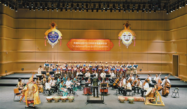 2月24日至25日,西藏自治區(qū)藏劇團(tuán)與自治區(qū)歌舞團(tuán)聯(lián)袂獻(xiàn)上西藏自治區(qū)2025年新年戲曲音樂(lè)會(huì)。音樂(lè)會(huì)由開場(chǎng)《扎西德勒》和尾聲《吉祥如意》以及《萬(wàn)千思緒》《古韻新聲》《永續(xù)輝煌》三個(gè)篇章組成,包含十余個(gè)新創(chuàng)與經(jīng)典節(jié)目,為觀眾呈現(xiàn)了一場(chǎng)視覺(jué)與聽覺(jué)的盛宴。
