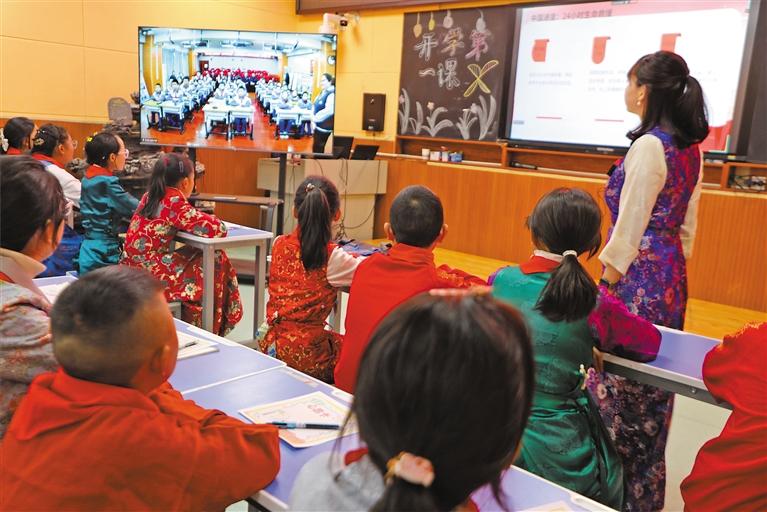 圖為兩地師生連線共上開學(xué)第一課。記者 格桑倫珠 攝