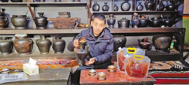 平時,拉薩、山南、日喀則、林芝等地經(jīng)銷商自己開車上門進貨。洛桑多吉家的非遺就業(yè)工坊通過幾乎純手工方式生產(chǎn)的青稞酒供不應(yīng)求。