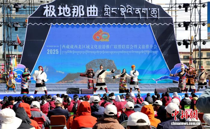 圖為西藏藏西北區(qū)域文化旅游推廣聯(lián)盟聯(lián)席會(huì)暨文旅推介會(huì)活動(dòng)現(xiàn)場(chǎng)文藝演出。那曲市文化和旅游局供圖