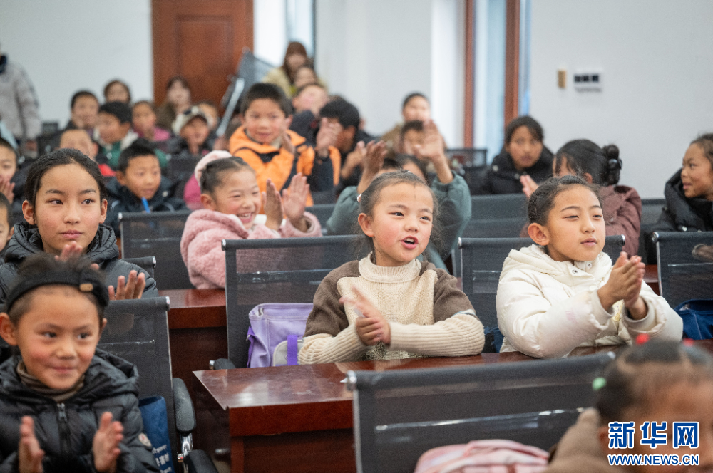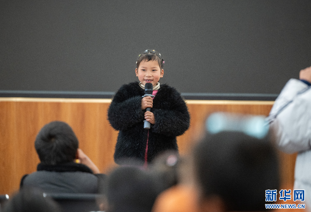 1月16日,小朋友們在觀看文藝匯演。新華網(wǎng) 旦增努布 攝