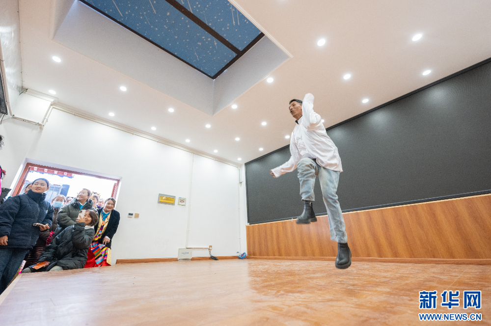 1月16日,社區(qū)文藝隊(duì)在表演節(jié)目。新華網(wǎng) 旦增努布 攝