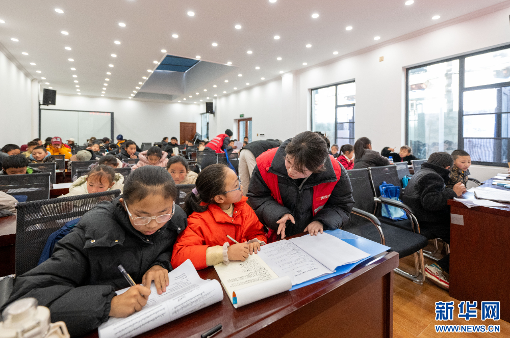 1月16日,社區(qū)工作人員在輔導(dǎo)作業(yè)。新華網(wǎng) 旦增努布 攝