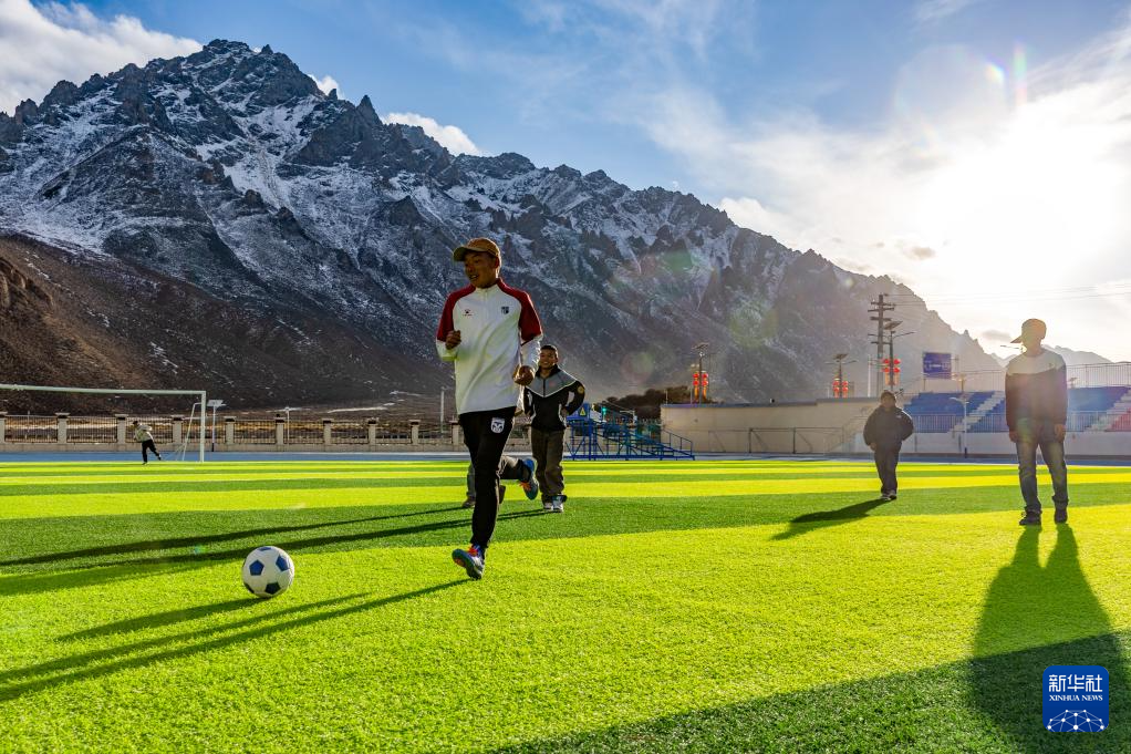 頓珠嘉措是嘉黎縣中學(xué)初二的學(xué)生,也是該校足球隊(duì)的成員。嘉黎縣中學(xué)的球場被當(dāng)?shù)厝朔Q為“雪山下的夢幻球場”,球場背靠連綿的雪山,白云飄蕩在藍(lán)天。盡管嘉黎縣海拔高、空氣稀薄,但是當(dāng)?shù)睾⒆觽儗w育運(yùn)動的熱愛不減。