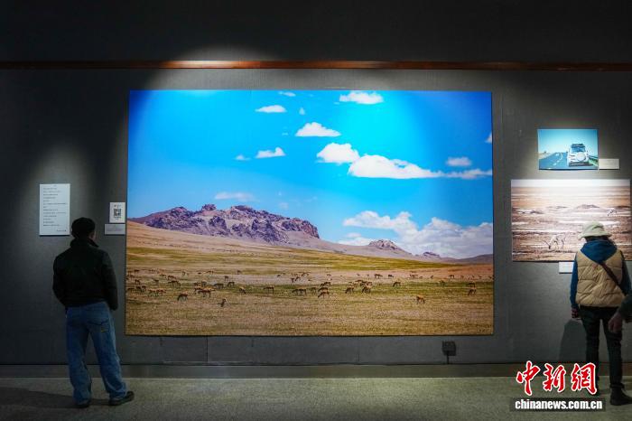 圖為大幅藏羚羊照片吸引觀眾。中新社記者 劉冉陽(yáng) 攝
