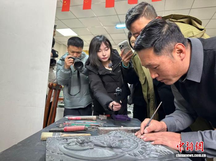 1月31日,中國國家級非遺硯臺制作技藝(洮硯制作技藝)甘南州級代表性傳承人盧蘇努現(xiàn)場演示洮硯制作。中新社記者 馮志軍 攝