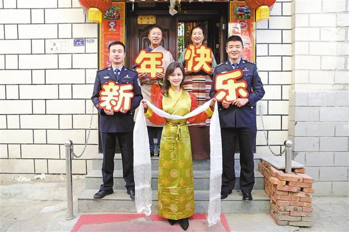 連日來,西藏出入境邊防檢查總站執(zhí)法調(diào)查支隊(duì)以“百萬警進(jìn)千萬家”活動(dòng)為依托,開展“民族團(tuán)結(jié)一家親,民警結(jié)親賀新春”為主題的“尋親之路”?;顒?dòng)中,大家共同掛起紅燈籠,貼上春聯(lián),共致新春祝福。圖為結(jié)親民警在家門口合影。唐睿 仁青旺堆 攝