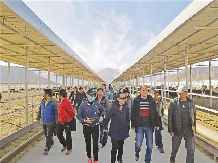在西藏泰成乳業(yè)有限公司牛羊育肥基地觀摩學習。記者 王菲 攝
