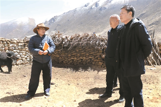 隨后,白瑪旺堆來到林周縣旁多鄉(xiāng)達(dá)龍村,看望慰問聯(lián)系戶阿旺仁青、桑嘎、次仁頓珠,逐戶詢問、了解脫貧情況,逐人算“增收賬”,并結(jié)合他們的實(shí)際情況落實(shí)精準(zhǔn)幫扶舉措,幫助貧困群眾依托牦牛養(yǎng)殖產(chǎn)業(yè)、務(wù)工增收等方式,實(shí)現(xiàn)持續(xù)穩(wěn)定增收致富。在達(dá)龍村,白瑪旺堆還實(shí)地查看了牦牛繁育基地運(yùn)營管理情況。該基地屬于達(dá)龍村產(chǎn)業(yè)扶貧項(xiàng)目,目前運(yùn)營管理存在一定困難,帶動(dòng)群眾增收效益不明顯。白瑪旺堆指出,要深入學(xué)習(xí)領(lǐng)會習(xí)近平總書記關(guān)于產(chǎn)業(yè)扶貧的系列重要指示精神,按照產(chǎn)業(yè)扶貧項(xiàng)目相關(guān)政策要求,發(fā)揮縣凈土公司作用,依托市場化機(jī)制盡快理順運(yùn)營管理模式,通過政府示范引領(lǐng),逐步帶動(dòng)當(dāng)?shù)刎毨罕妳⑴c到產(chǎn)業(yè)扶貧項(xiàng)目中來,健全完善有效帶動(dòng)貧困群眾增收的利益聯(lián)結(jié)機(jī)制,盡快闖出一條可持續(xù)可復(fù)制的新路子。