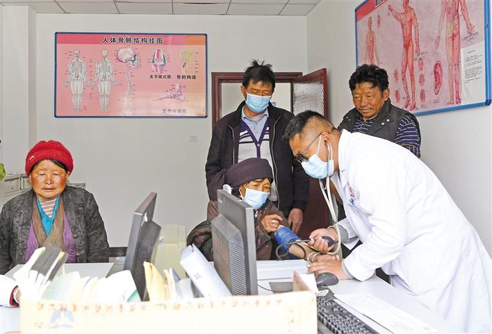 圖為山南市扎囊縣扎其鄉(xiāng)群眾在鄉(xiāng)衛(wèi)生院就診。記者 洛桑 次旺 攝