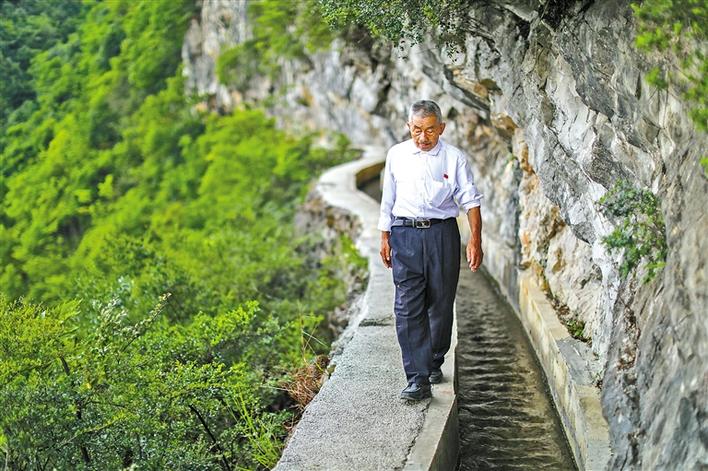 村民們親切地把水渠稱作“大發(fā)渠”。正是在老支書黃大發(fā)的帶領(lǐng)下,村民們鋼釬鑿、風鉆敲,硬是在峭壁懸崖間,挖出一條近10公里的“天渠”。
