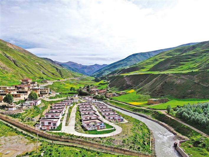 清晨,記者一行來(lái)到丁青縣丁青鎮(zhèn)仲佰村。鄉(xiāng)道兩側(cè)一排排紅白相間的藏式小樓整齊排列,樓頂上一面面鮮艷的五星紅旗迎風(fēng)飄揚(yáng)。