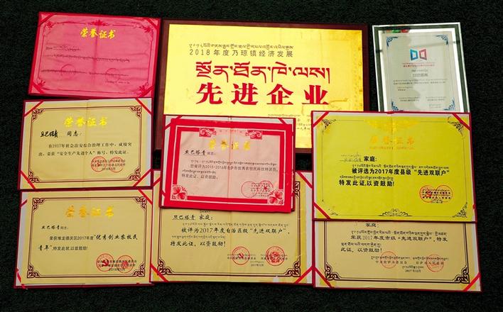 旦巴塔青榮獲的各種榮譽證書。