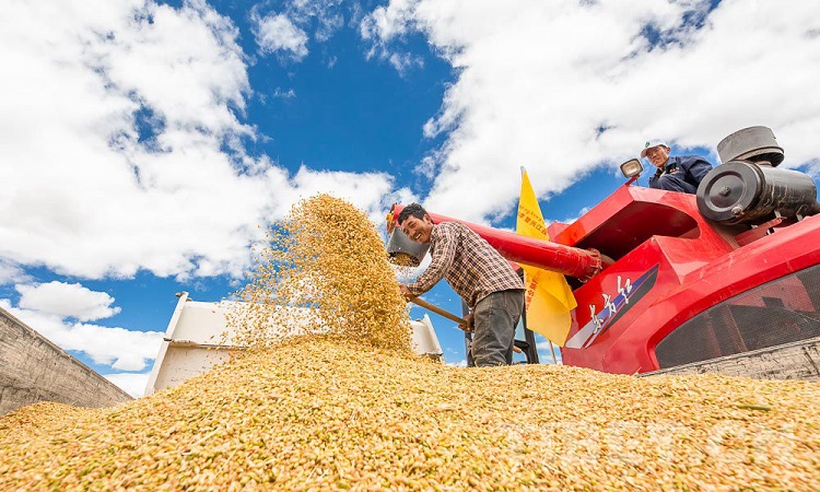 圖為日喀則農牧民秋收 攝影:趙耀