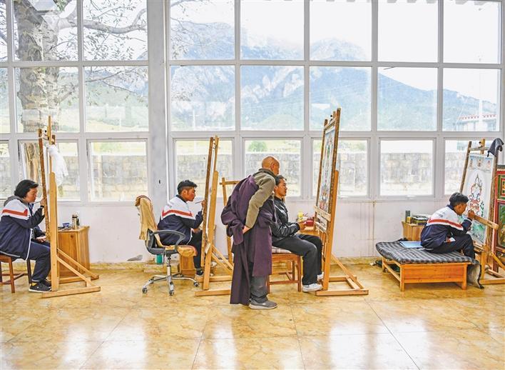 近年來,西藏大力發(fā)展現(xiàn)代職業(yè)教育,為打贏脫貧攻堅戰(zhàn)提供了技能保障。作為非物質(zhì)文化遺產(chǎn)傳承人,88歲的嘎瑪?shù)吕赵谖鞑夭际锌ㄈ魠^(qū)嘎瑪鄉(xiāng)成立了民族手工藝培訓(xùn)基地,使民族手工藝從家族作坊式的生產(chǎn)向集中生產(chǎn)轉(zhuǎn)變。精湛的手工藝品逐漸走出了山溝,也帶動群眾走上了致富路。目前,嘎瑪?shù)吕展灿袑W(xué)員460名,其中112名曾是建檔立卡貧困戶,去年人均年收入達到20萬元左右。