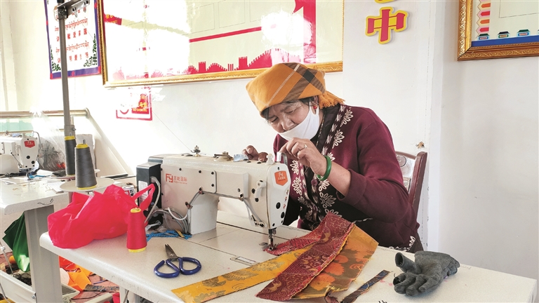 圖為在扶貧車間內(nèi),工人正在進行縫紉。拉薩融媒記者 余洋洋攝