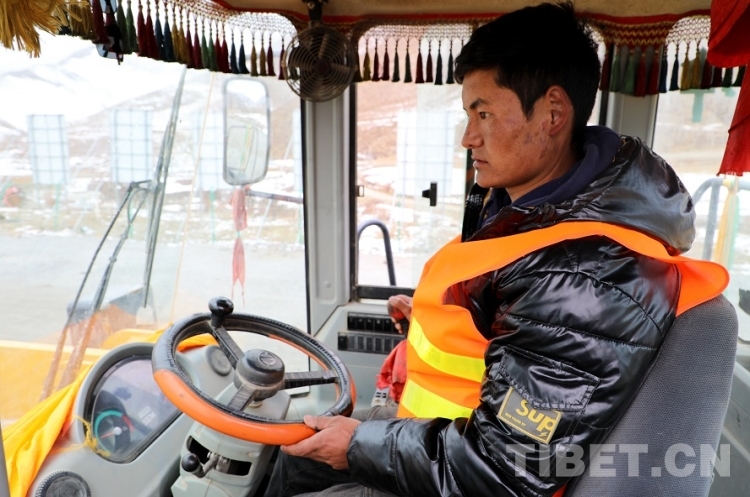 圖為農(nóng)牧民機械操作員次旺在駕駛裝載機 圖片來源西藏自治區(qū)交通運輸廳網(wǎng)站