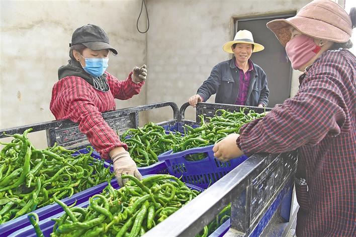 圖為在基地就業(yè)的瓊結(jié)縣下水鄉(xiāng)村民將采摘的青椒運往市場。記者 洛桑 次旺 攝