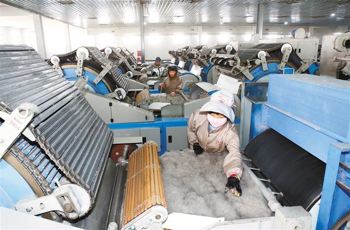 當?shù)厝罕娫诶_市達孜工業(yè)園生產(chǎn)車間加工羊毛。