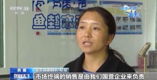 亞東縣副縣長 尼瓊:市場終端的銷售由我們國營企業(yè)來負責(zé),各個養(yǎng)殖合作社就少承擔(dān)市場的推廣費用,還有一個前期的繁育養(yǎng)殖也是我們國營企業(yè)負責(zé),因為這里面技術(shù)的要求更大,前期的成本也是比較大的,所以各個合作社是管中間的商品魚的養(yǎng)殖。