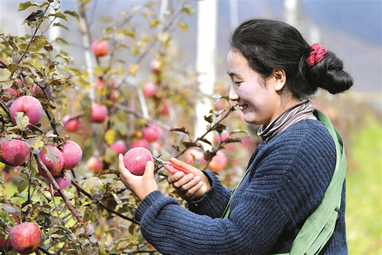 日前,西藏林芝市晚熟蘋果喜獲豐收,當(dāng)?shù)剞r(nóng)牧民在果園忙著采摘蘋果。據(jù)悉,西藏林芝市栽種蘋果約3.78萬畝,預(yù)計(jì)全年產(chǎn)量可達(dá)1.5萬噸,產(chǎn)值1.7億元。[詳細(xì)] -