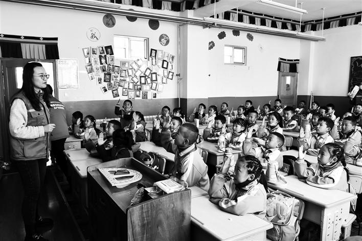 國網(wǎng)拉薩供電公司共產(chǎn)黨員服務(wù)隊(duì)入校園進(jìn)行電力知識(shí)宣講。國網(wǎng)拉薩供電公司供圖