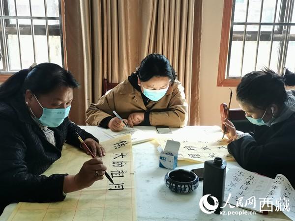 “村里有好多人喜歡書法,恰好城關(guān)區(qū)開展新時代文明實踐站·一村一特色文化品牌村(社區(qū))創(chuàng)建活動,我們就想著往這個方面打造一下。”蔡村第一書記土登洛桑介紹。如今,每逢周六,村里會邀請拉薩市文聯(lián)、拉薩市書法家協(xié)會的書法名家,為熱愛書法的村民們傳授技藝。
