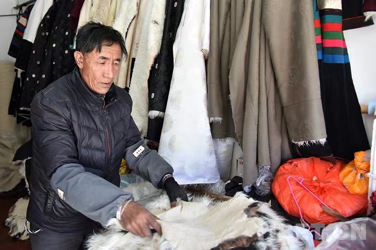 “這是羊羔皮藏袍、這是帽子……”日前,在民族手工業(yè)縫紉基地,嘎瑪平措向記者介紹著自己和徒弟縫紉的手工藝品。他告訴記者,加入合作社以后,可以按勞計分,年底分紅?!拔乙惶炜梢杂?2分,徒弟一天計10分,我們每年有兩個月的休假。加入合作社,因為買手工藝品的人也多了,我們的收入比以前高多了。”