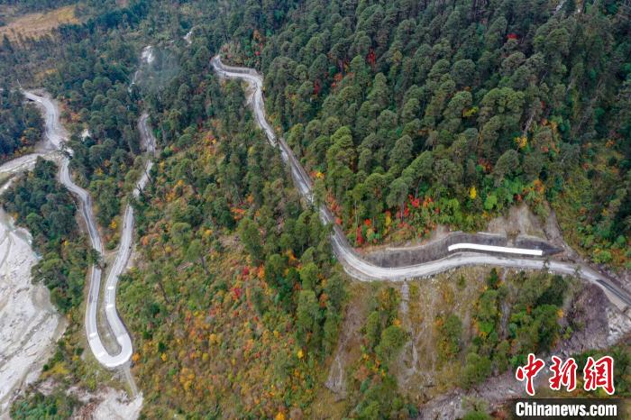 圖為航拍墨脫公路。 貢嘎來松 攝
