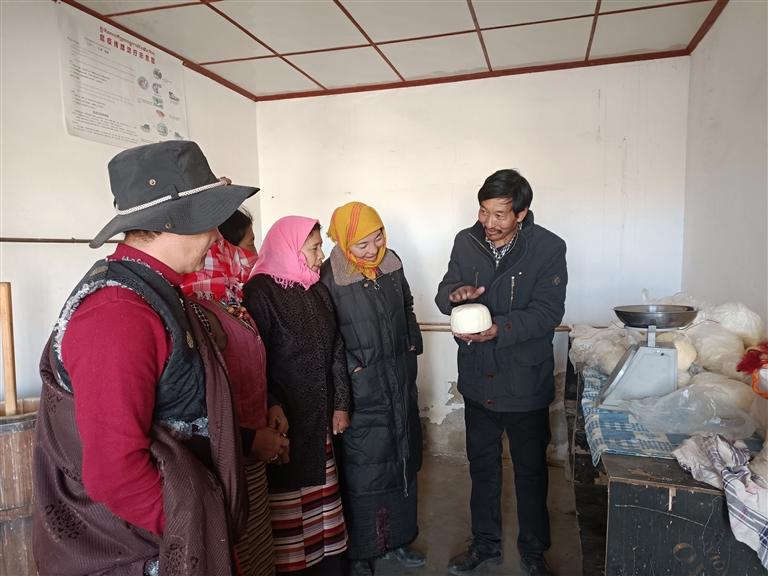馬村草場遼闊,有著養(yǎng)殖犏牛等牲畜的良好自然條件。以前該村由于一直依靠傳統(tǒng)方式養(yǎng)牛,規(guī)模小、科技含量低、品種老化、產(chǎn)業(yè)帶動力不明顯,一直處于“家家養(yǎng)牛家家窮”的狀態(tài)。2013年,在拉薩市委組織部(駐村工作隊)的幫扶下,投入90萬元成立了堆龍德慶區(qū)馬鎮(zhèn)馬村平措犏牛養(yǎng)殖合作社。接下來的幾年不斷擴大養(yǎng)殖規(guī)模和提高養(yǎng)殖經(jīng)營水平,建成了馬村高原特色犏牛養(yǎng)殖及乳制品加工銷售一體化養(yǎng)殖基地,其乳制品深受市場的歡迎。目前,合作社有犏牛100多頭,帶動5人就業(yè),2019年起除了與其他村集體經(jīng)濟收入一起給常住戶分紅外,每年向本村建檔立卡貧困戶分紅。“我們村經(jīng)過發(fā)展,成立了犏牛養(yǎng)殖合作社,合作社的收入一年比一年好。今年,村集體經(jīng)濟為我們脫貧戶每戶分紅2900元,我們特別開心。今后也希望能更多地參與到村集體發(fā)展中,學好技術,讓家庭條件越來越好?!贝迕衤迳8吲d地說。